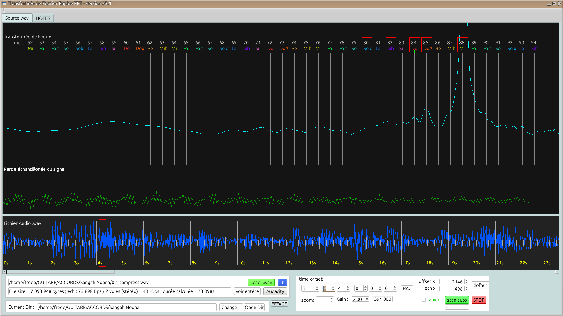 Calcul de la transformée de Fourier rapide d'un signal audio au format PCM enregistré dans un fichier .wav