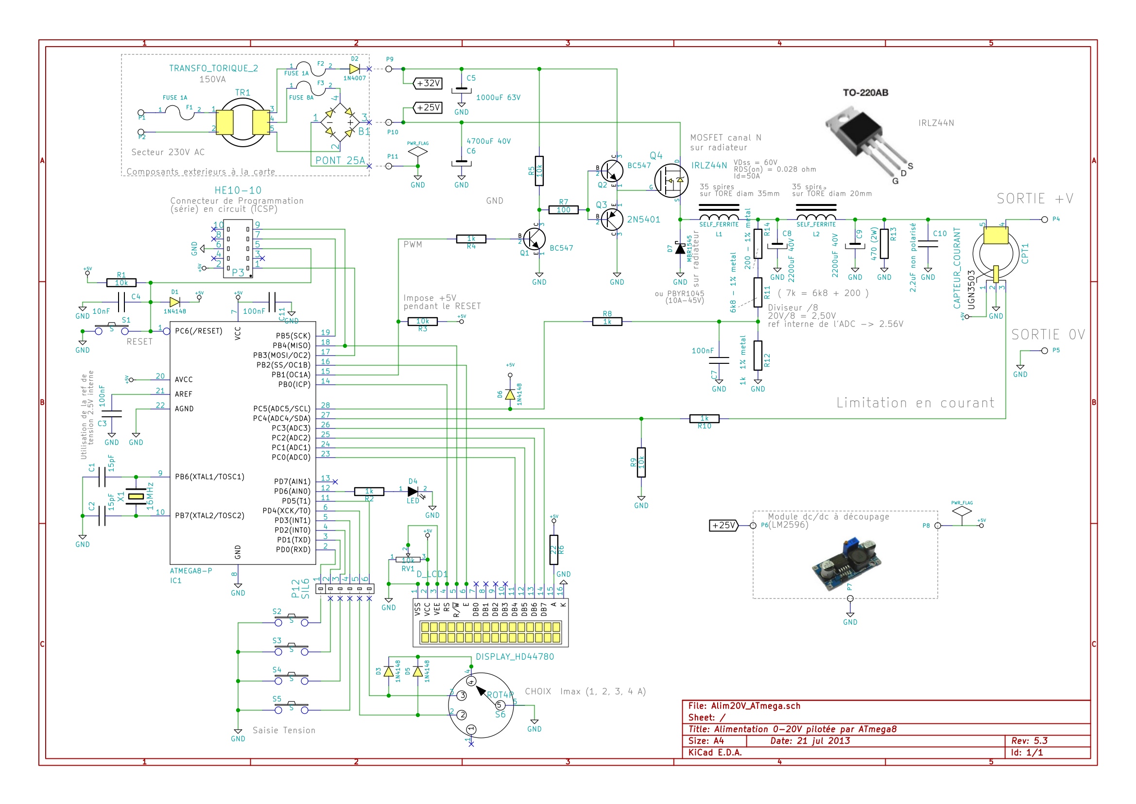 IMPORTANT: programmer les FUSES BODLEVEL et BODEN (Brown out level detector) afin de fiabiliser le RESET à l'allumage